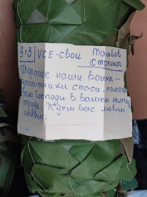 Вот такими посланиями снабжали каждую маскировочную сеть плетуньи города Тамбова.
