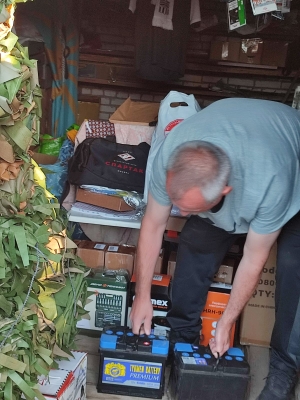 Николай во время погрузки гуманитарной помощи.