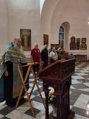 Отец Алексий читает молитву на благополучие в дальней дороге.