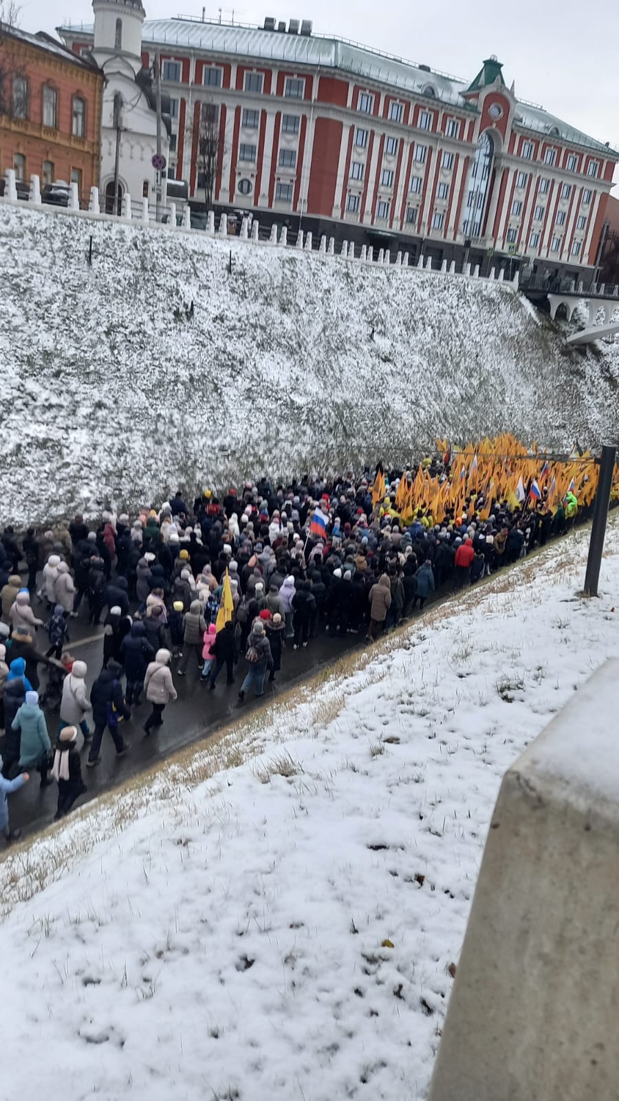 Представители нашего объединения приняли участие в крестном ходе и прошли вместе с многотысячным ходом от Нижегородского кремля до памятника князю Пожарскому и гражданину Минину. Крестный ход проходил под девизом наших предков "Купно за едино!" ("Вместе за одно!"). На протяжении всего тридцати минутного хода участники пели молитвы и скандировали патриотические лозунги. После крестного хода, у памятника Минину и Пожарскому прошел митинг посвященный дню единства. На митинге был освещен конвой отправляющийся в зону СВО и благословлены добровольцы отправляющиеся на защиту Родины. В заключении Олег Газманов исполнил патриотическую песню Россия!