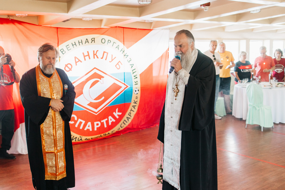 Отметить 50-летний юбилей спартаковского фанатского движения на теплоходе Ривьера по Москве-реке собралось более сотни болельщиков. Среди собравшихся были представители Москвы и Московской области, Саратова и Рязани, Волгограда, Тамбова и Тулы, супружеская пара из Италии. В гости к болельщикам пришли кумиры прошлых лет - ветераны "Спартака" Юрий Васильевич Гаврилов и Сергей Александрович Швецов. К сожалению, генеральный директор футбольного клуба "Спартак-Москва" Евгений Мележиков проигнорировал приглашение болельщиков, не удостоив нас ответом. Мероприятие началось с проведения Отцом Алексием поминальной Панихиды по усопшим игрокам, тренерам и болельщикам московского "Спартака". После поминальной Панихиды настало время открытия нашего праздника. В исполнении Евгения Балашова прозвучал гимн "Спартака", который подхватили все красно-белые участники круиза. Затем слово взяли основатели фанатского движения в нашей стране, члены Старой Гвардии болельщиков "Спартака" Сергей Люберецкий (Митяков С.М.), Александр Заплата (Гуренков А.В.), Анатолий Тоха (Хафизов А.Я.) и Алексей Чика (Отец Алексий, в миру Чекмарев А.М.). Ребята вспомнили свои первые шаги в становлении фанатского движения и пожелали молодому поколению всегда и везде быть рядом с любимой командой.