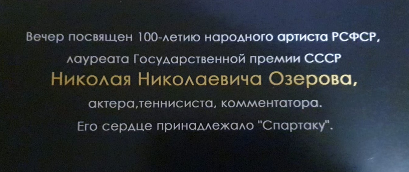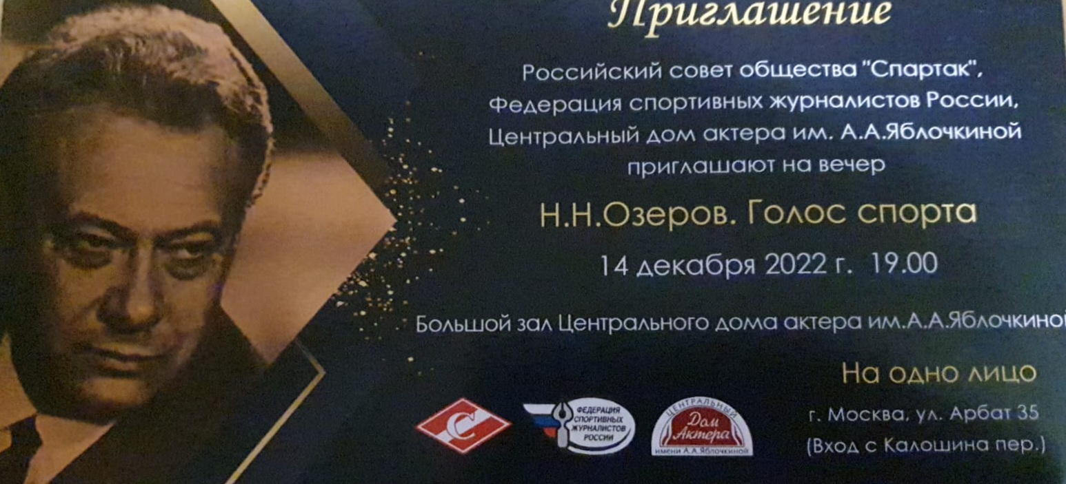 Так же объединение болельщиков "Спартака" Старая Гвардия приглашает своих членов на праздничный вечер посвященный 100-летию Николая Николаевича Озерова "голос спорта".