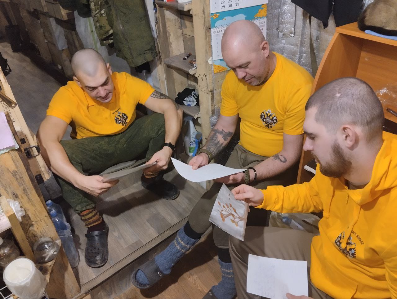 Я на позиции приехала в костюме Снегурочки. .Прочитала стихи ребяткам. Автором одного стиха "Ты прости меня, Боже Всевышний", является постоялица «Социального дома в Чертанове», где я волонтёр уже почти 7 лет. Ее зовут Наталья Крутова. Мы долго беседовали с ребятами, они очень много нам рассказали о своём служении. Так здорово было слышать, что они, несмотря на бои и тяготы службы, следят за играми «Спартака». Нам с Владимиром так захотелось, чтобы это услышали игроки команды «Спартак». Один из бойцов, он уже представлен ко второму ордену, ,даже воюет исключительно по-геройски после побед Спартака. Я думаю, что мы как-нибудь передадим футболистам и они будут так же геройски побеждать на зелёных полях, как наши ребята герои здесь на передовой. Мы передали от нашего общества Старая гвардия "Спартака" привет, подарки, рации и поклон. Так же от ребят - байкеров «М-8» мини электостанцию, а от легенды спартаковского движа Амира Профессора - спартаковскую атрибутику. Ещё окопные свечи, сухой душ да браслеты выживания от храма «Святителя Киприана» в Чертанове. А так же икону Божией Матери Толгская от отца Константина из храма Святой Троицы в Чертанове. От Светы Маэстро передали ребятам большое количество детских рисунков и писем с новогодними поздравлениями.